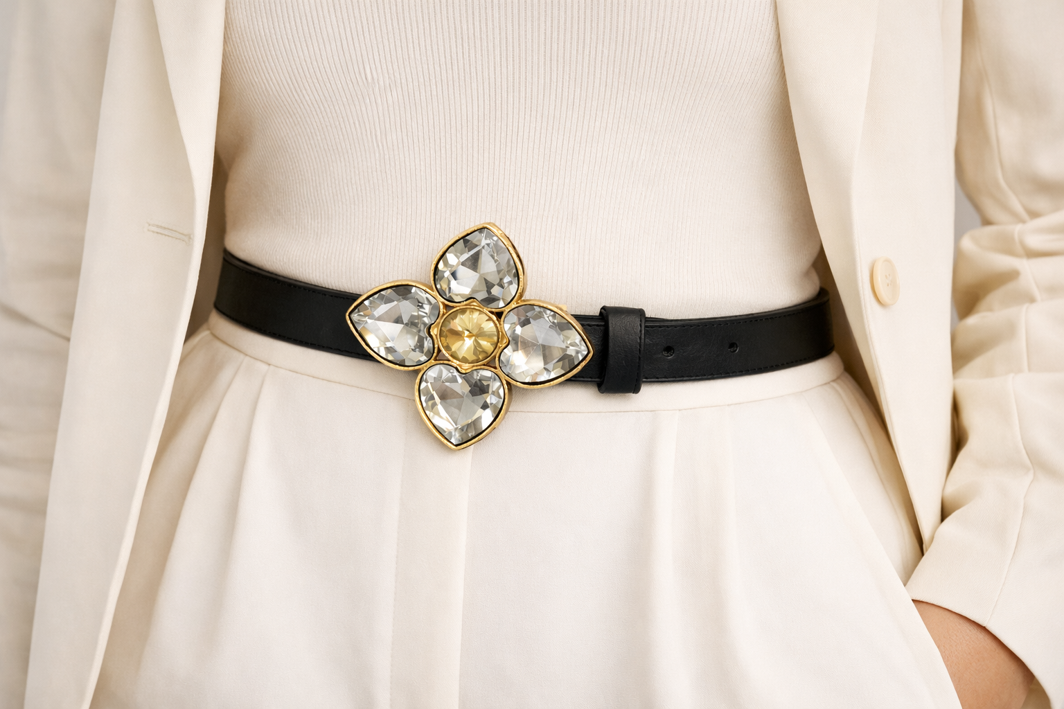 Crystal Bloom Luxe Belt – Black