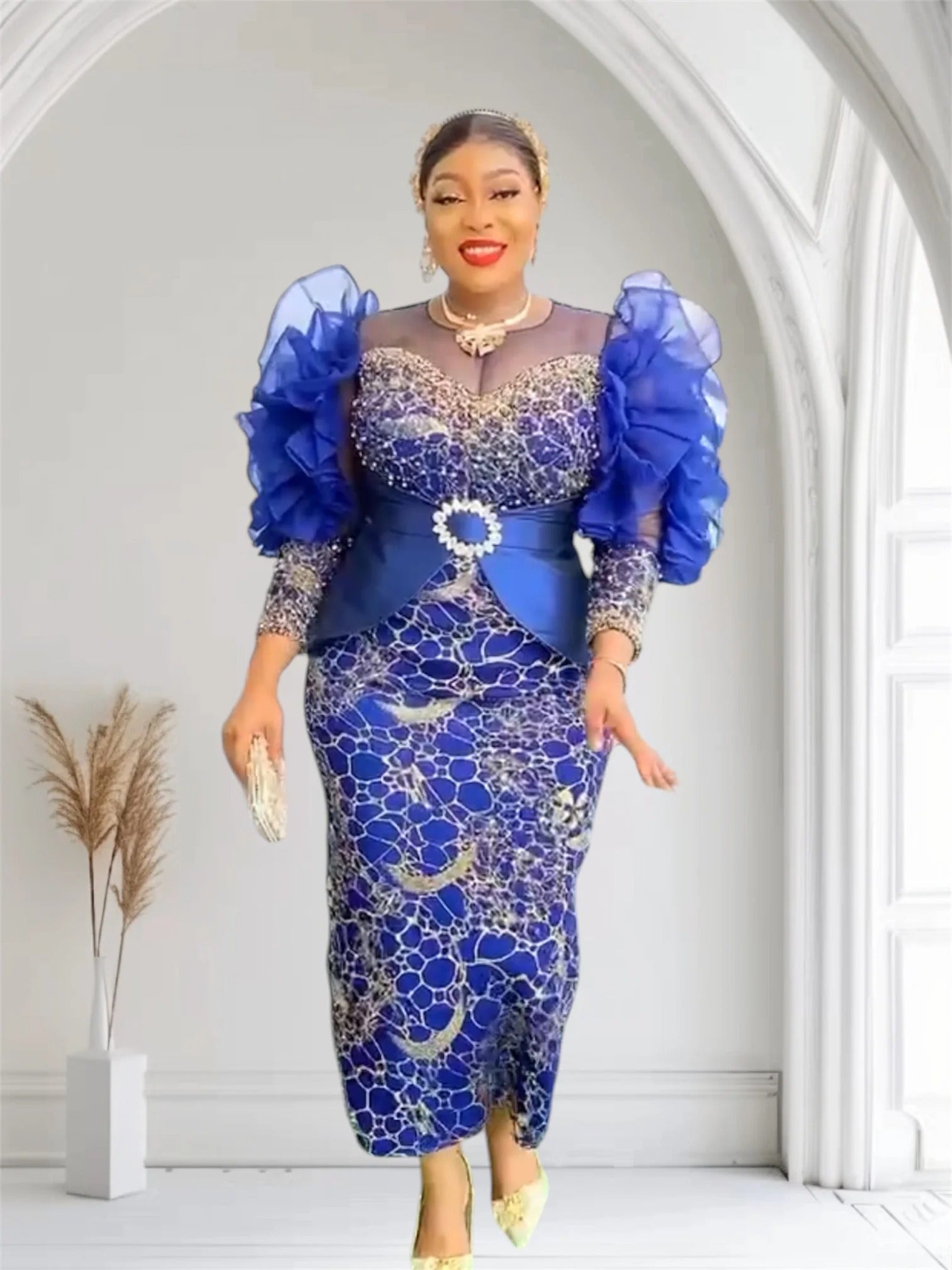 Step into elegance with our Blue Full Length Shimmers Party Dress. The flattering fit and vibrant color make this dress a must-have for any special occasion. Designed to turn heads and make you feel confident, this dress is perfect for parties and events where you want to make a statement. Elevate your style with this stunning piece and shine bright all night.