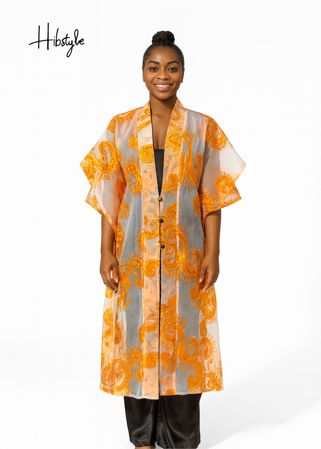 Embrace refined sophistication with this stunning two pieces kaftan and pant , beautifully adorned with intricate gold embroidery. The flowing silhouette drapes gracefully, offering both comfort and timeless elegance. Delicate embroidery cascades down the front and hemline, while the structured collar and subtly flared sleeves add a touch of classic charm. The shimmering gold accents catch the light with every movement, creating a radiant and regal effect. Paired with statement jewelry and a gold embellished handbag, this kaftan is perfect for formal events, cultural celebrations, or elegant evening occasions.