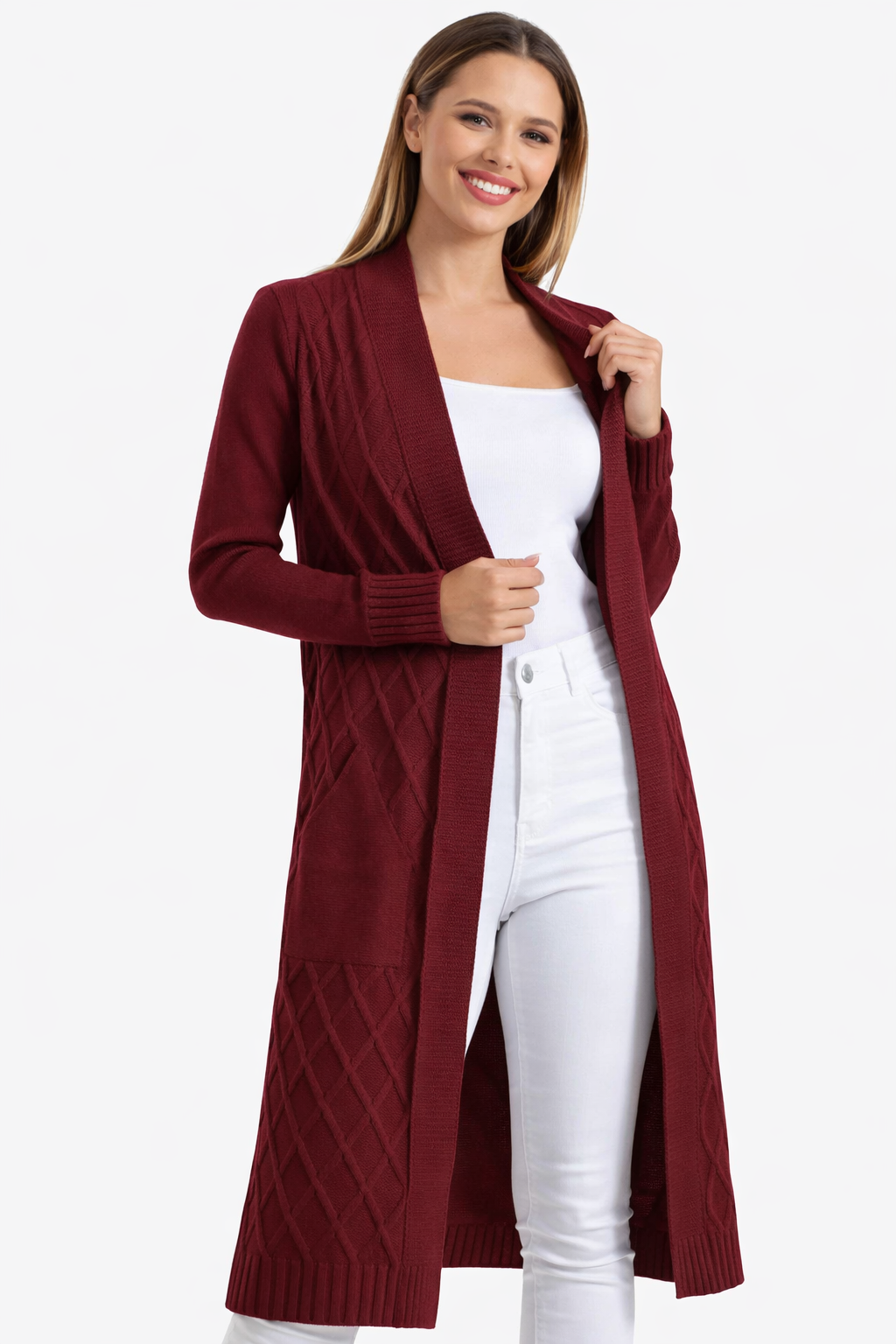 Open Front Burgundy Cardigan With Pockets